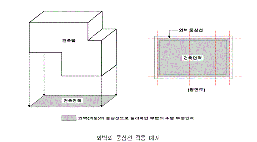 1) 단열재를 구조체의 외기에 설치하는 단열공법으로 건축된 건축물의 건축면적은 내측 내력벽의 중심선을 기준으로 한다.